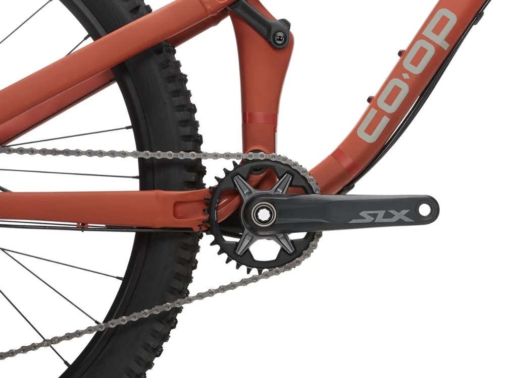 - 1 x 12-speed drivetrain with Shimano SLX rear derailleur eliminates the front derailleur to enable swift, streamlined shifting and reduce overall weight