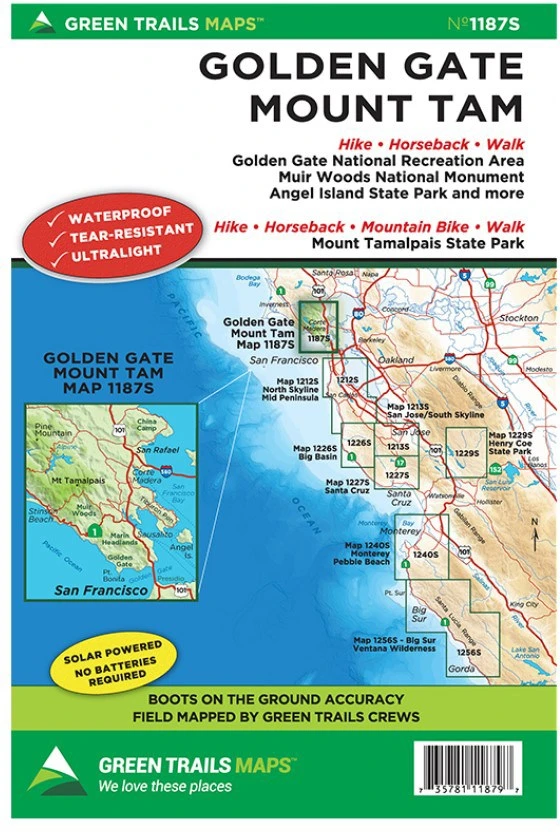 The Green Trails map for Golden Gate and Mount Tam map guides you to stunning views, fascinating topography and 400 miles of trails through the Marin Headlands, Mt. Tamalpais and Marin watershed.